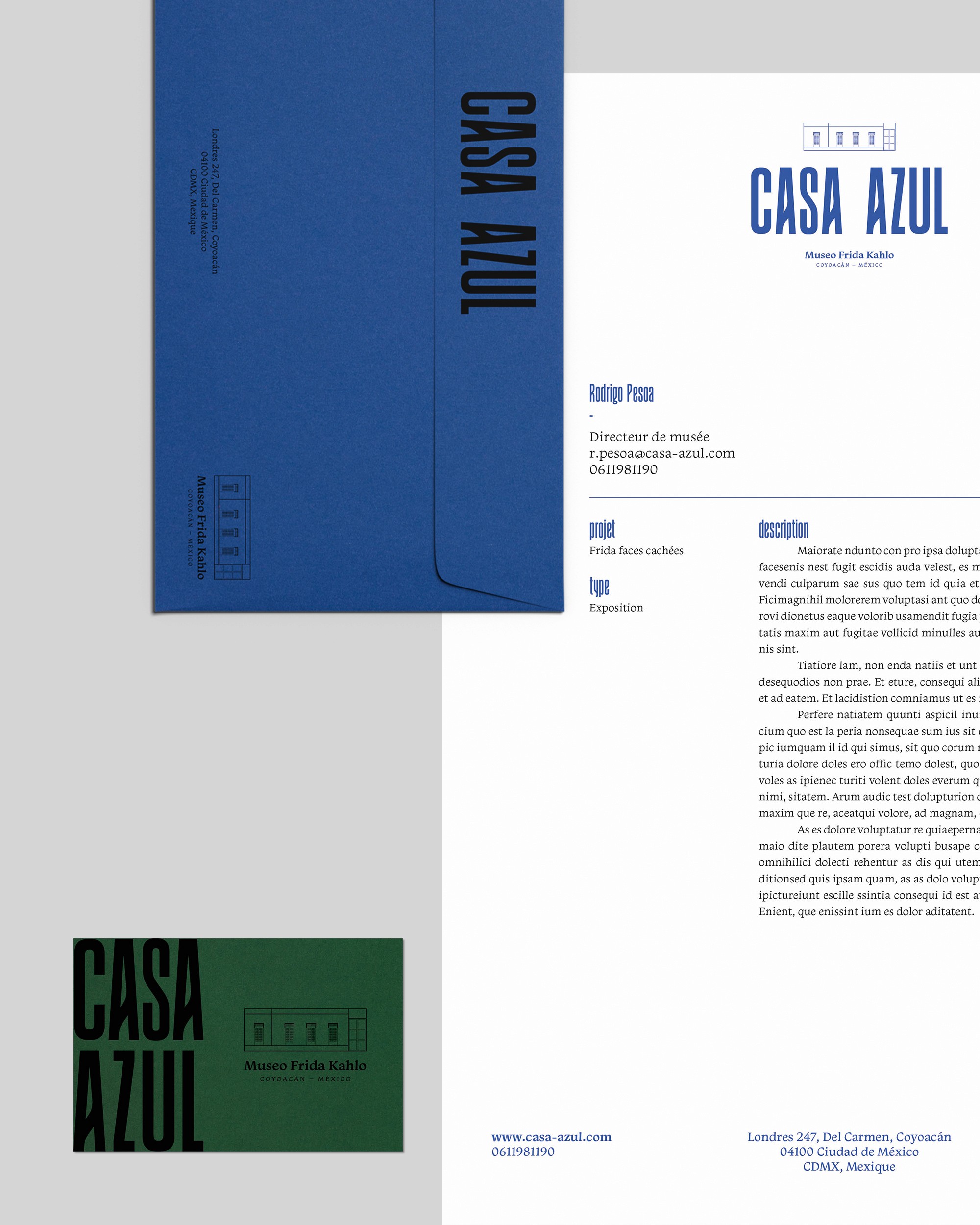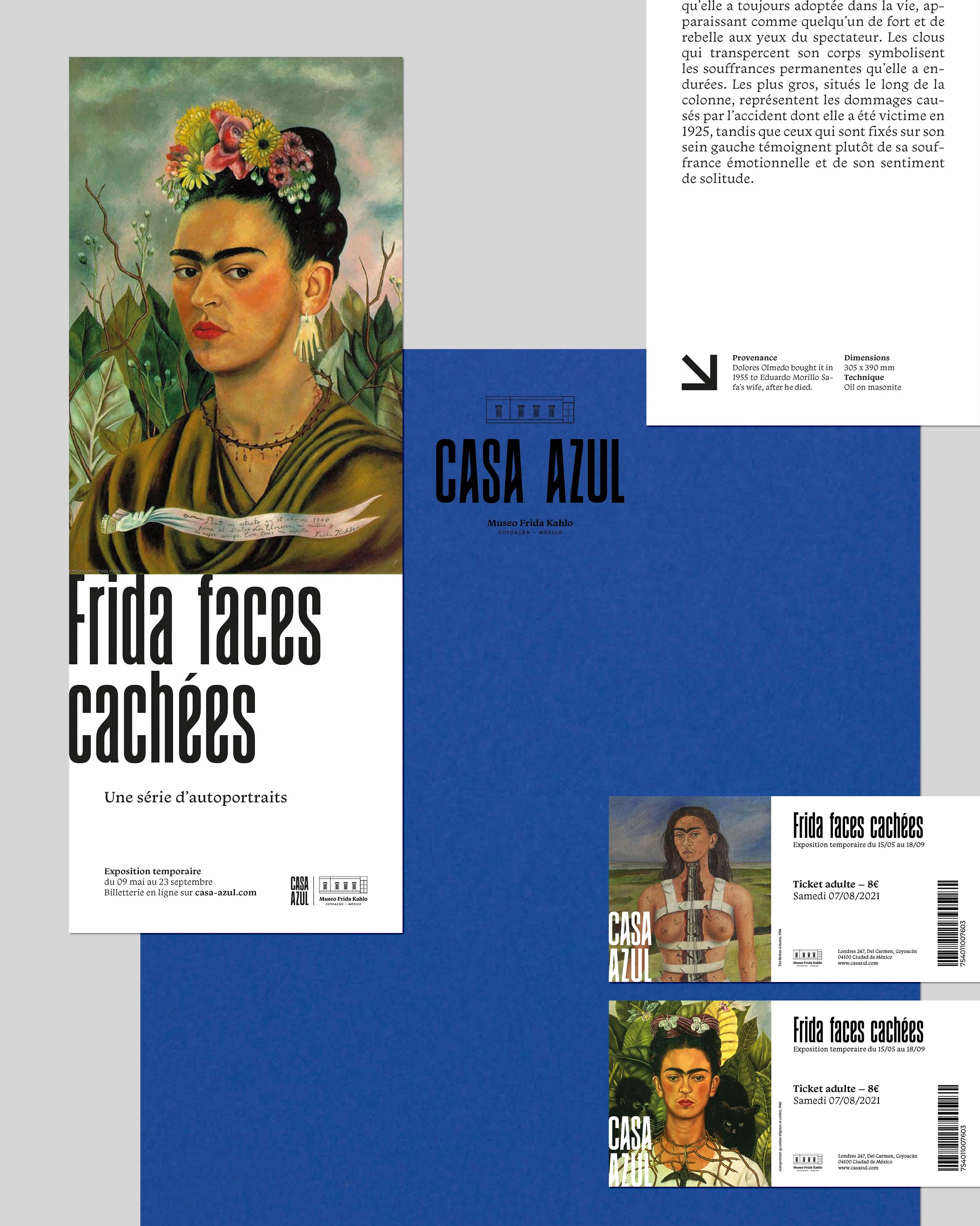 Le projet d'identité visuelle pour le musée Frida Kahlo au Mexique est inspiré de l'exposition virtuelle "Faces de Frida", une collection incroyablement riche offerte par Google Arts Culture. Le langage graphique s'inspire de l'architecture unique de cette résidence emblématique, tandis que les couleurs choisies rappellent le drapeau mexicain et le bleu ultramarin vibrant ornant la façade de la maison.