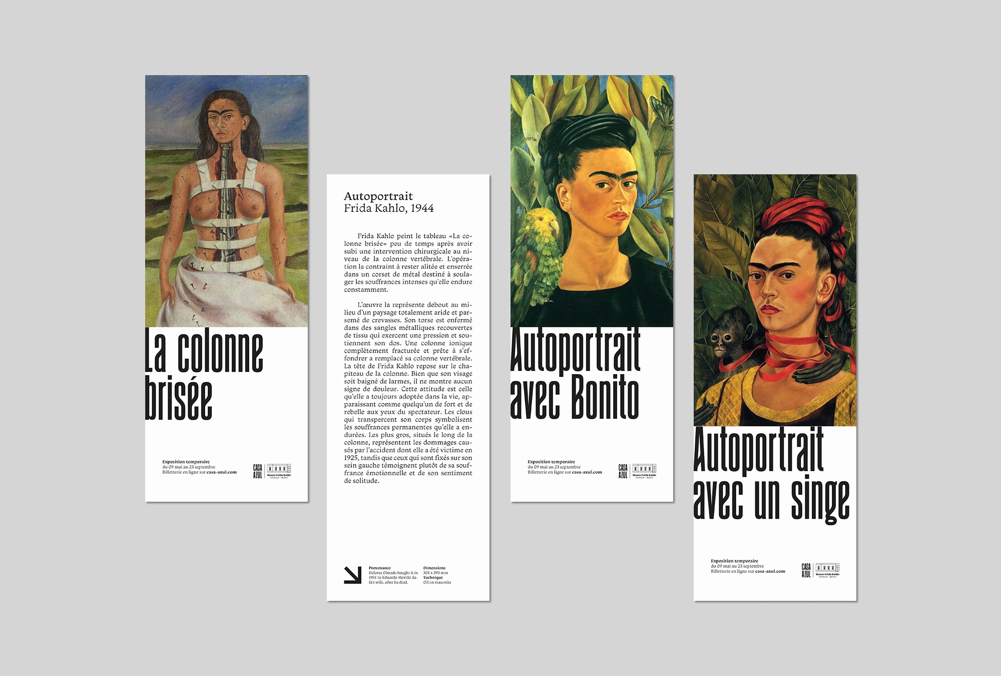 L'identité visuelle capture l'héritage de Frida Kahlo où l'art, l'histoire et la créativité convergent, tout en honorant la culture du Mexique qui a profondément influencé son art.